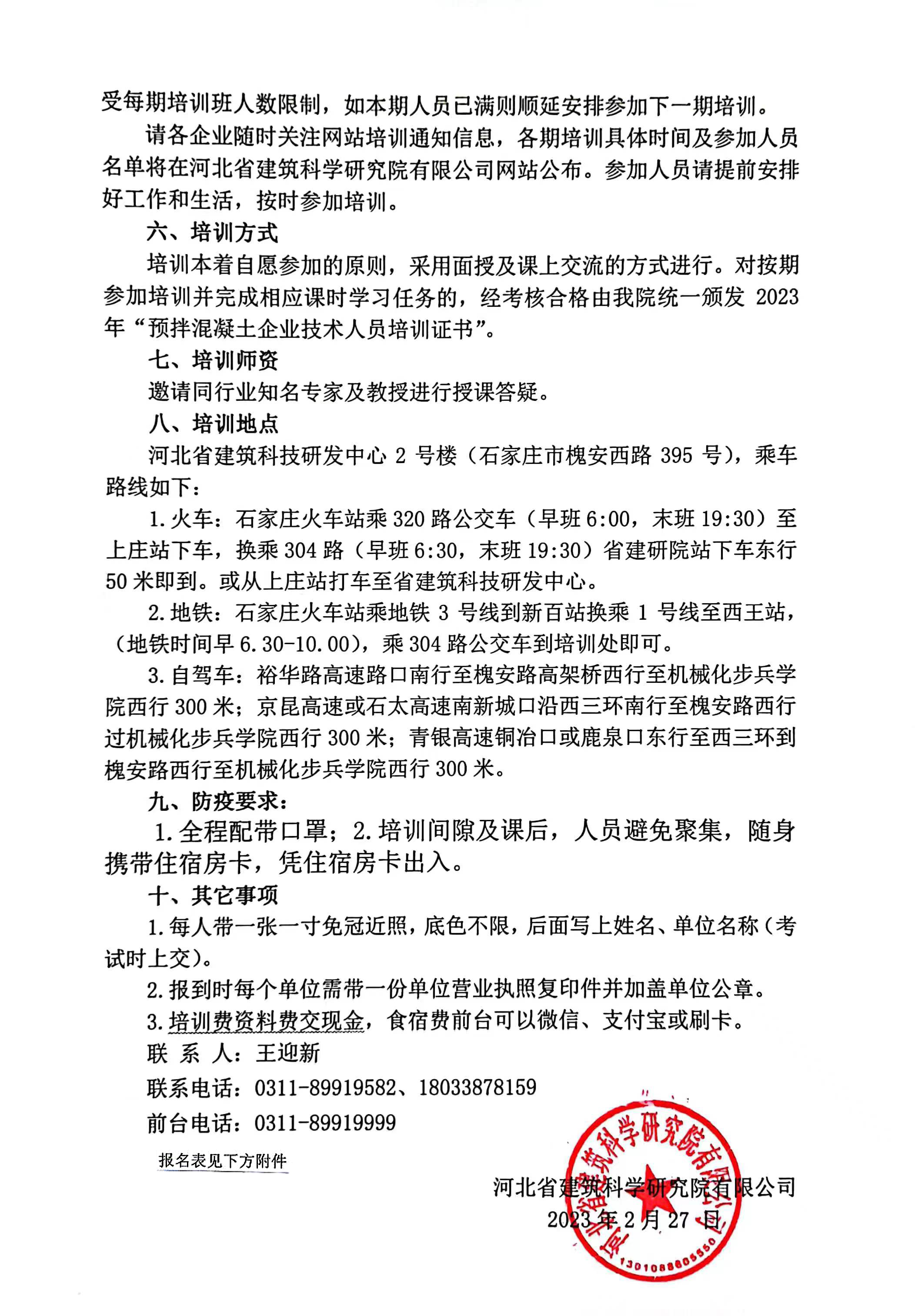 關于舉辦2023年預拌混凝土企業(yè)技術人員培訓班的通知