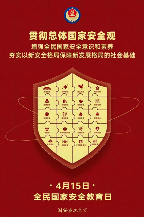 2023年4月15日是第八個(gè)全民國(guó)家安全教育日。活動(dòng)主題為:“貫徹總體國(guó)家安全觀,增強(qiáng)全民國(guó)家安全意識(shí)和素養(yǎng),夯實(shí)以新安全格局保障新發(fā)展格局的社會(huì)基礎(chǔ)。”