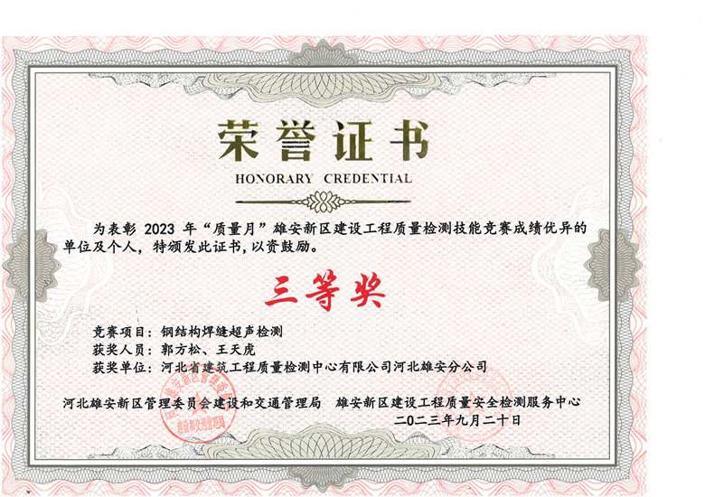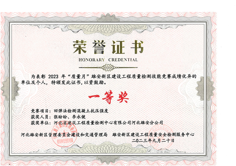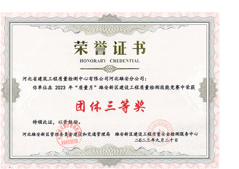 雄安分公司榮獲雄安新區建設工程質量檢測技能競賽多項獎項